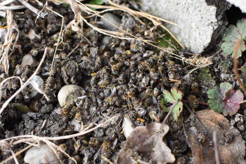 Les abeilles mortes en extérieur pourraient laisser penser à une intoxication.