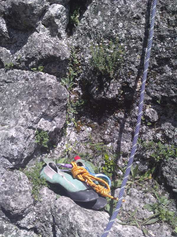 Chaussons d’escalade a oublier a moins d’avoir des chaussettes en aciers. Rire