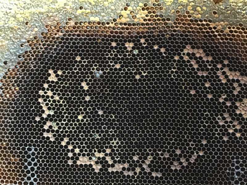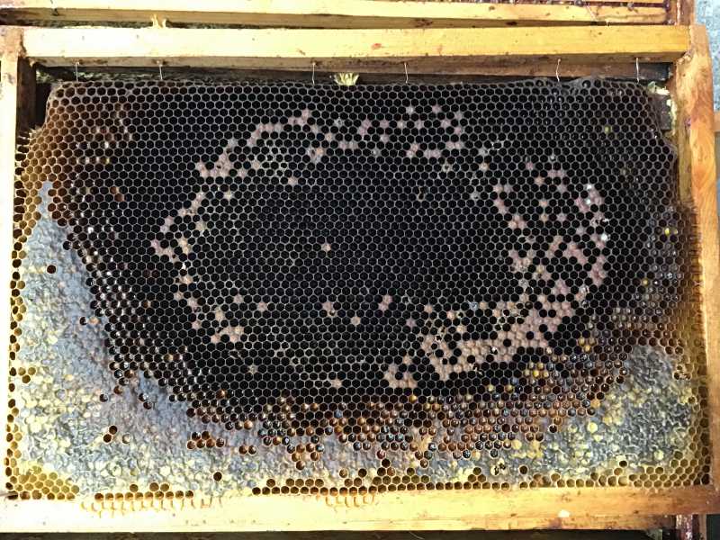 Des petits trou dans opercule du couvain. J ai fait les tests avec une allumette et verifié l aspect général.