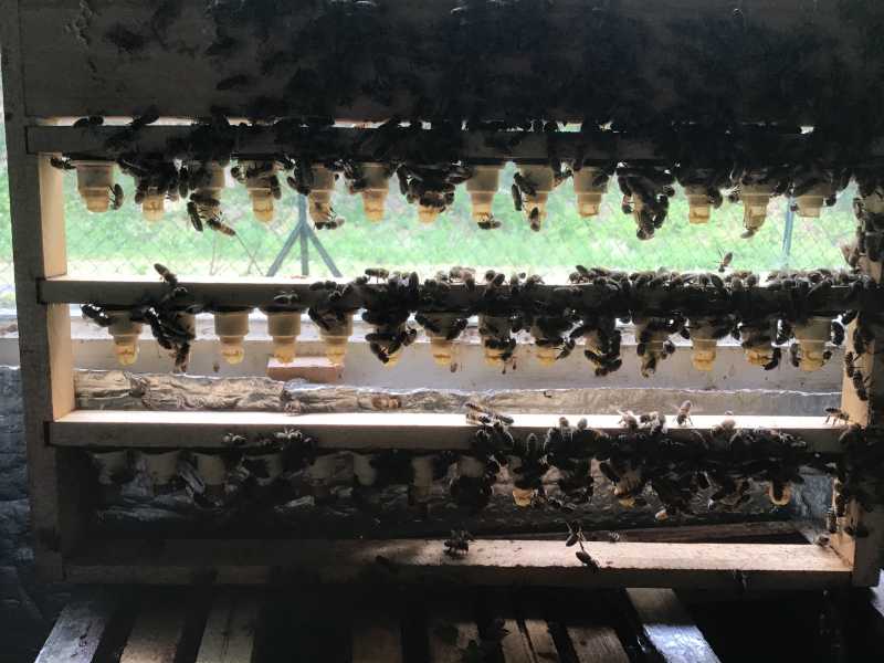 Surtout celle de droite. Elle s’est faite bouffée sur le coté mais apparemment la reine a découpée l’opercule. J’ai pas osé regarder dans l’essaim voir si il avait élevé ses propres cellules (au cas où il y a bien une reine).