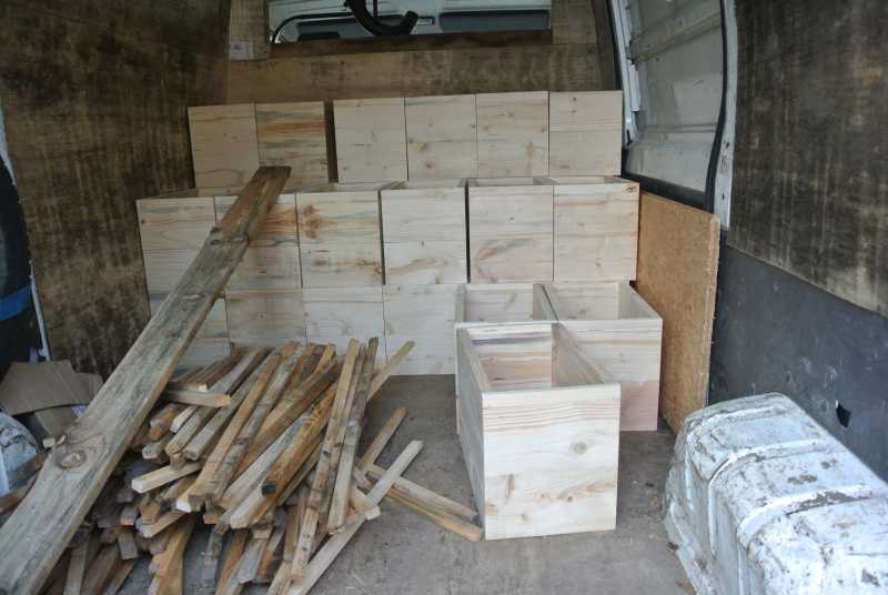Tu as quoi comme matos pour faire ça ?Moi ce que je me demande, c’est si tu as acheté le Kangoo à la dimension des ruches ou si tu fabriques tes ruches à la dimension du Kangoo… c’est au centimètre !
