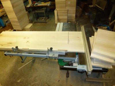 J’assemble mes planches par longeurs de 2m apres les avoir dégauchi,rabotée 24mm,rainure languette.
