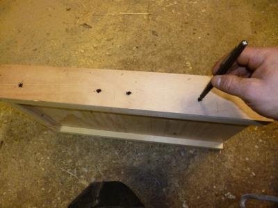 La ca se voit pas trop sur la foto mais grace a un gabarit, je marque l’emplacement des vis.
