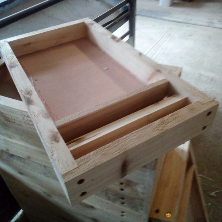 Les ruchette 5 cadres à venir (ainsi que leurs nourrisseurs) seront en douglas.kaki pourquoi 3 sorte de bois