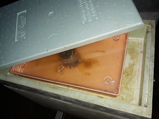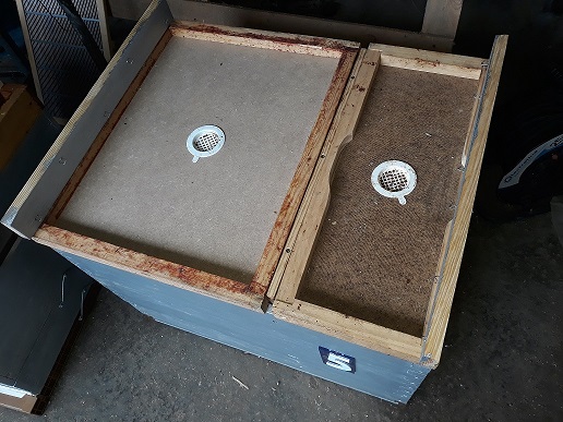 Ce qui a justifié la modif, c’est que les nourrisseurs plastique finissent par se déformer, l’espace restreint au dessus des têtes de cadre devient un élevage de teigne, et qu’il faut gratter à chaque fois les têtes de cadres pour enlever propolis, ponts de cire et teignes.