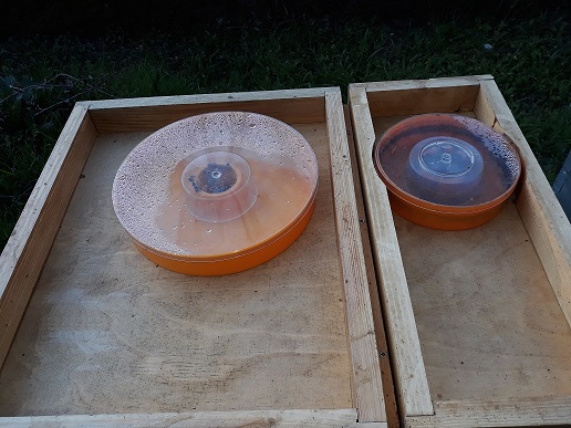 Il est vrai que j’ai récupéré des ruches nicot et les nourrisseurs dont bien déformés, j’aurais bien gardé mes nourrisseur bois, mais c’est peu pratique avec les toits plastiques