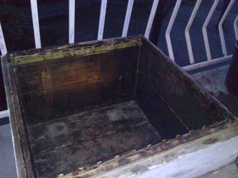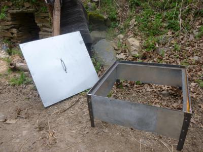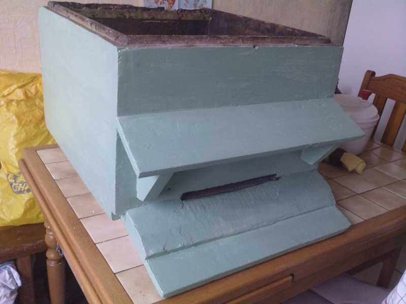 Tom, tu as raison mais j’avais envie de la fenêtre sur la face intérieure et je la voulais affleurante [sub]:P[/sub] Je savais que ce serait plus difficile mais j’avais envie… et puis ça me permet de mettre de la mousse dans l’épaisseur de la ruche et encore une plaque de protection contre la pluie par-dessus.