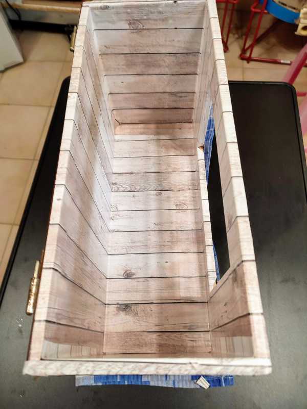 – là je viens de finir de recouvrir tout l’intérieur de vinyle autocollant (de cuisine), là ça fait juste 10 min que j’ai remis sous tension, on va voir.Ca commence à bien me gaver!