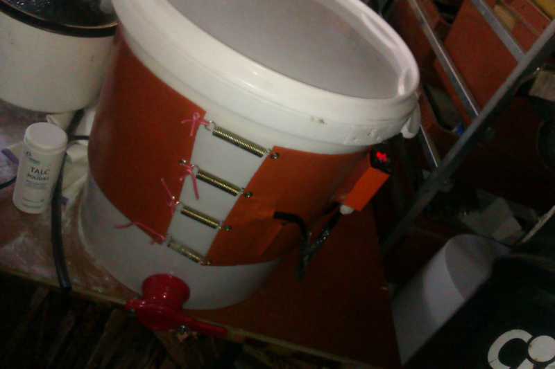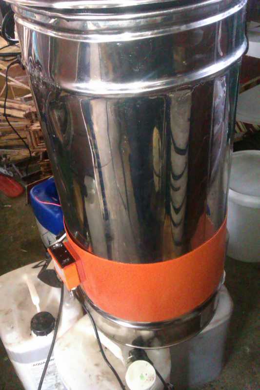 ainsi je pourrai y déposer plusieurs futs de 40 kilo.Par rapport à une armoire chauffante, la résistance de l’eau sur les parois du seau, est moindre, on gagne en terme d’efficacité( temps) et en terme d’énergie dépensée.