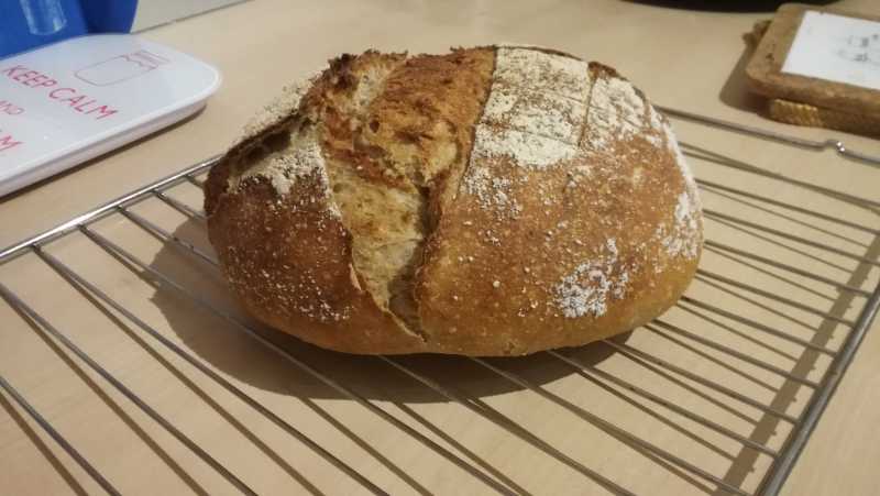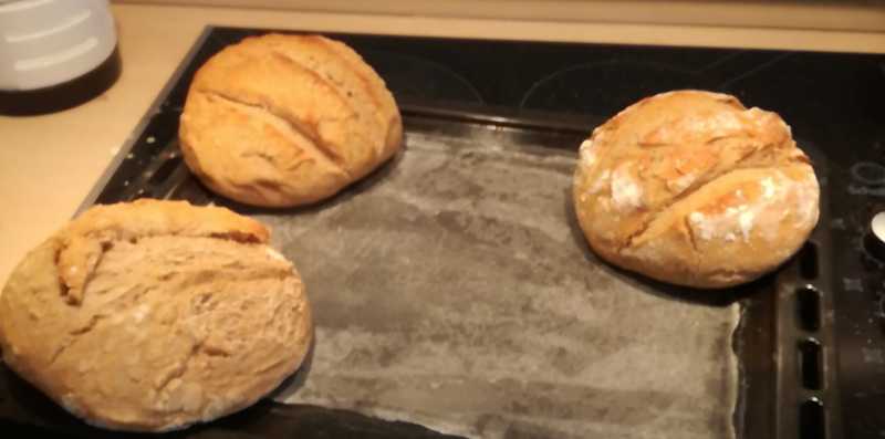 Sur la photo il y a un congélateur , une fois refroidi le lendemain je congèle il ne bouge pas , il est presque impossible de faire la différence , pour la conservation il dure une semaine en pain ou tourte pour un poids minimum de 800 gr ( quand je pars en famille les pains sont de 1kg le pain entamé et dans un torchon ou sacs tissus )
