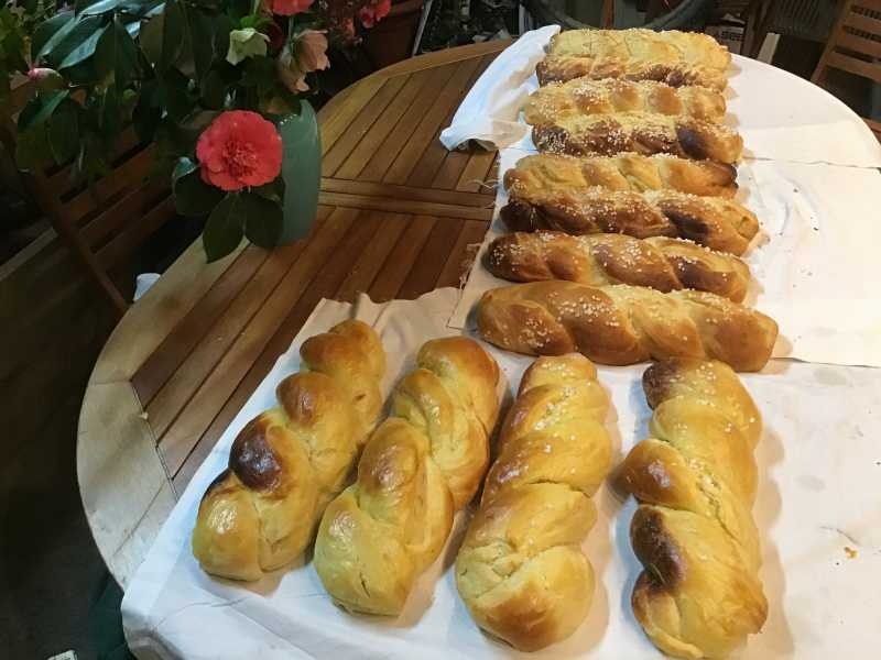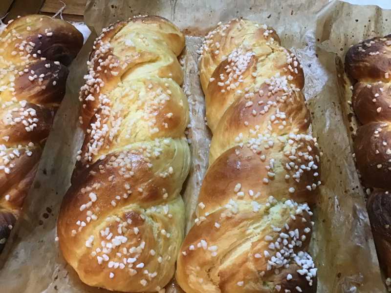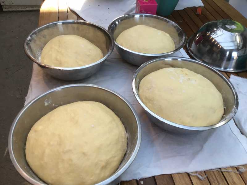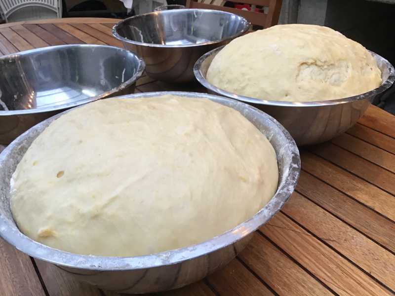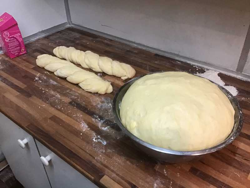 ma fille a fait la pâte depuis hier et travaillée , après je forme une boule en repliant comme le pain et le saladier fariné et couvert , après je divise en quatre le pâton et tresses deux brioches