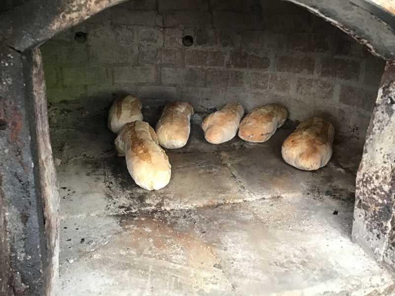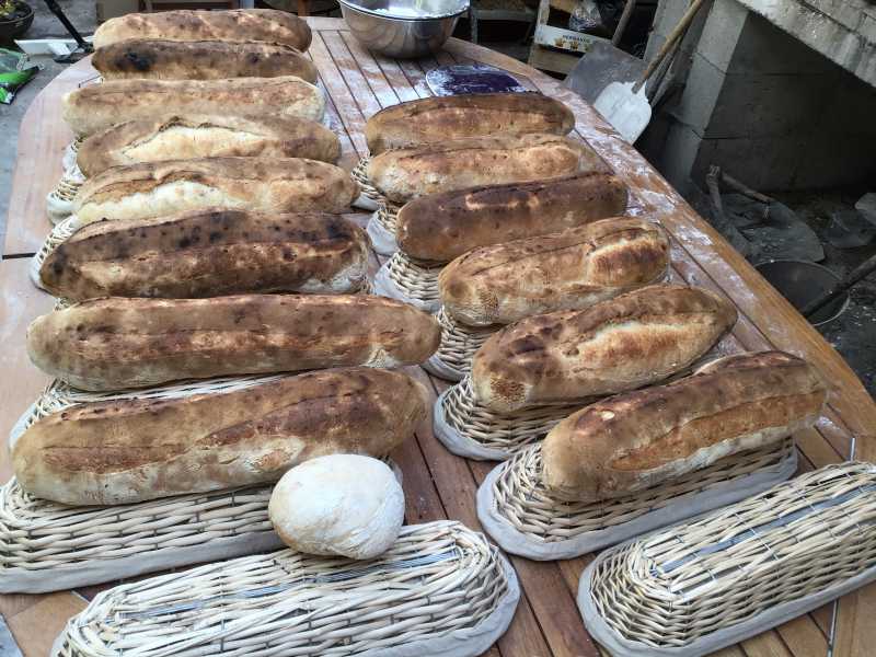 300gr de far 25 cl d’eau une pincèe de sel plus lev de boulanger èh bè ça monte pas bien . au bout de 4h, cuisson malgré tout ça fait une baguette plate la mie est pas vilaine mais pas èpaisseOui la brioche sa se termine , le pain aussi va falloir rallumer le fournil