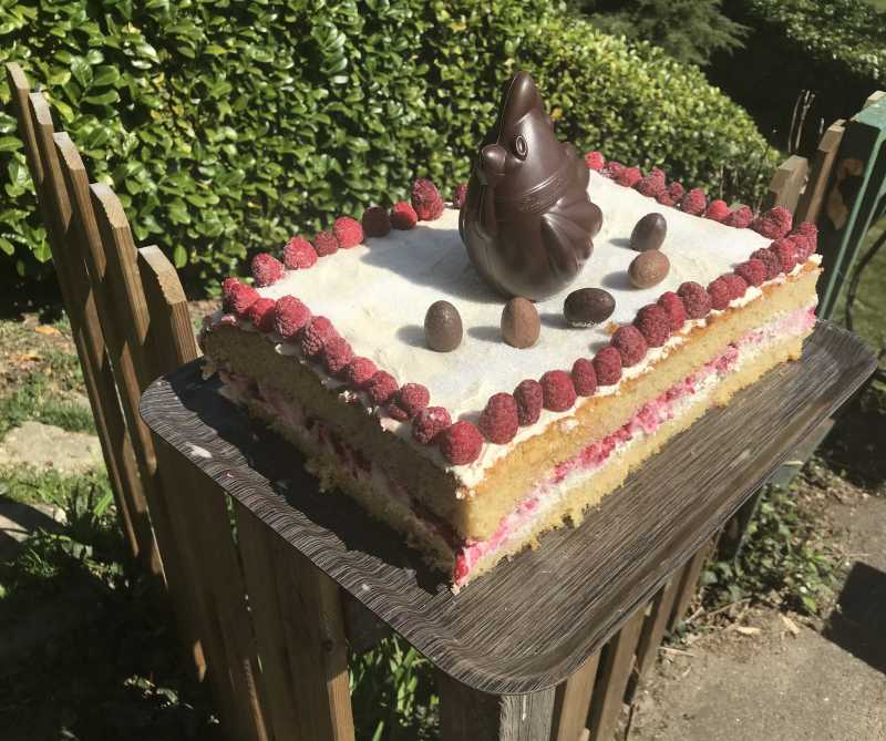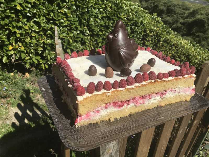 Bonjour en se jour de Pâques , un petit framboisier avec chantilly maison