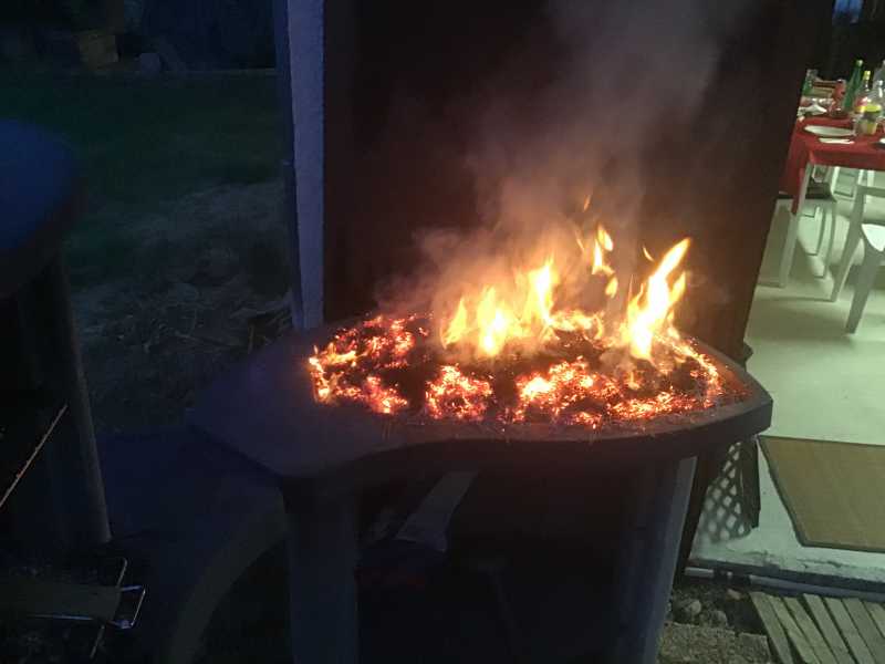 Bon pour le moment, je mets une feuille de papier cuisson dessous, car la première je l’ai déchiré et elle est resté sur la sole, j’ai tout poussé dans les braises.