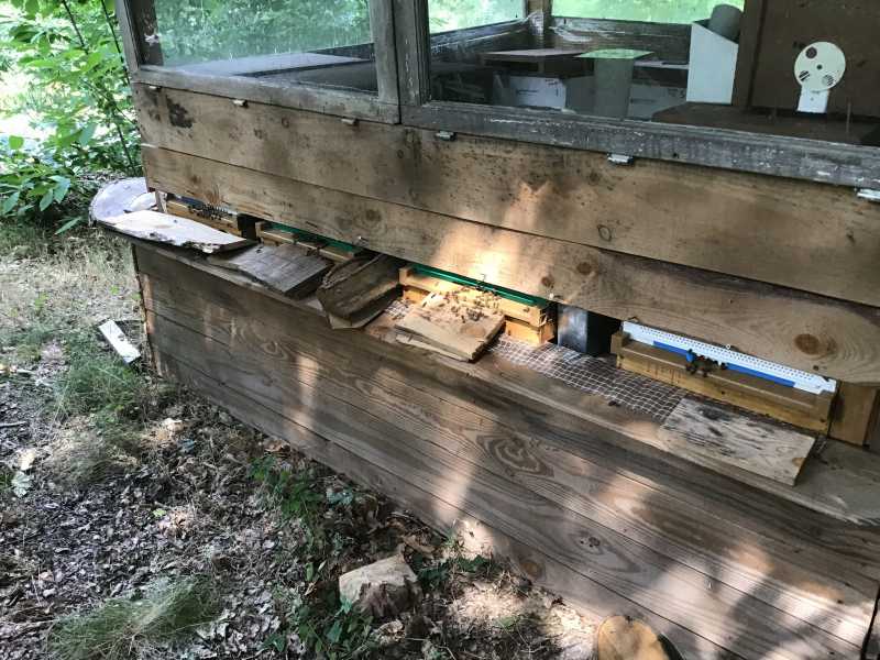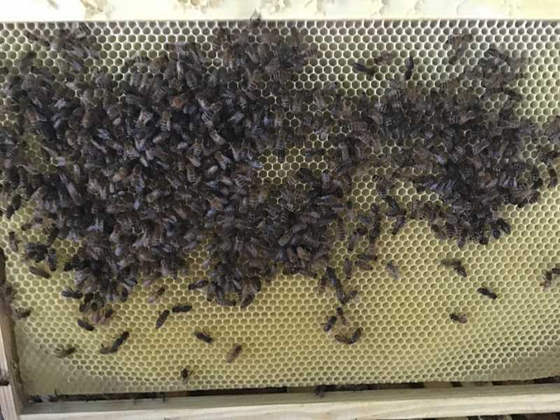 , essaims bien populeux en tout cas ,j’ai rajouté un cadre à étirer pour faire de la place aux plus grosses + un cadre de miel à toutes en bordure , elles ont toutes but un litron de sirop pendant la nuit