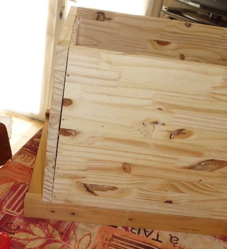 N’ayant pas trouvé de bois en 24mm d’ep, j’ai adapté mes cotes a du pin de 18mm avec un agglo de 9mm sur l’intérieur (je ne sais pas faire les encoches