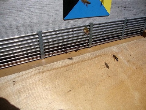 Est ce plus rapide que la méthode traditionnelle, je ne crois pas ( la surface est beaucoup plus faible et il faut attendre le bon vouloir des abeilles pour rentrer), mais c’est plus élégant et moins bourrin.J’ai gagné, c’est la méthode du tamis dans son principe: la grille à reine empêche la reine de passer.