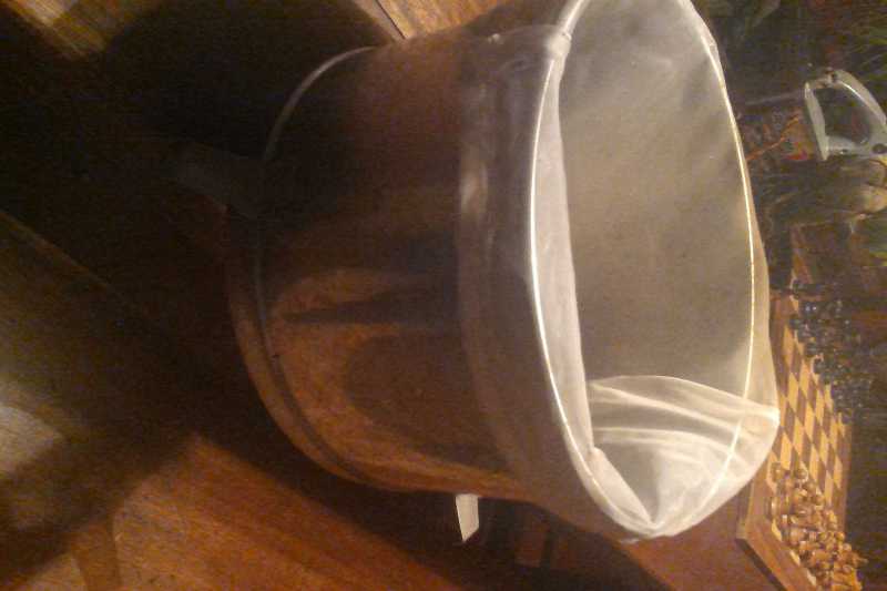 c’est une chaussette filtre, sauf que comme c est du 150micron ca passe doucement, ca se gonfle, ca se tend et passe au travers tout doucement. je n’avais pas de pochette de la taille de mon tamis, jai donc placé cette chaussette pour cet essai en travers.