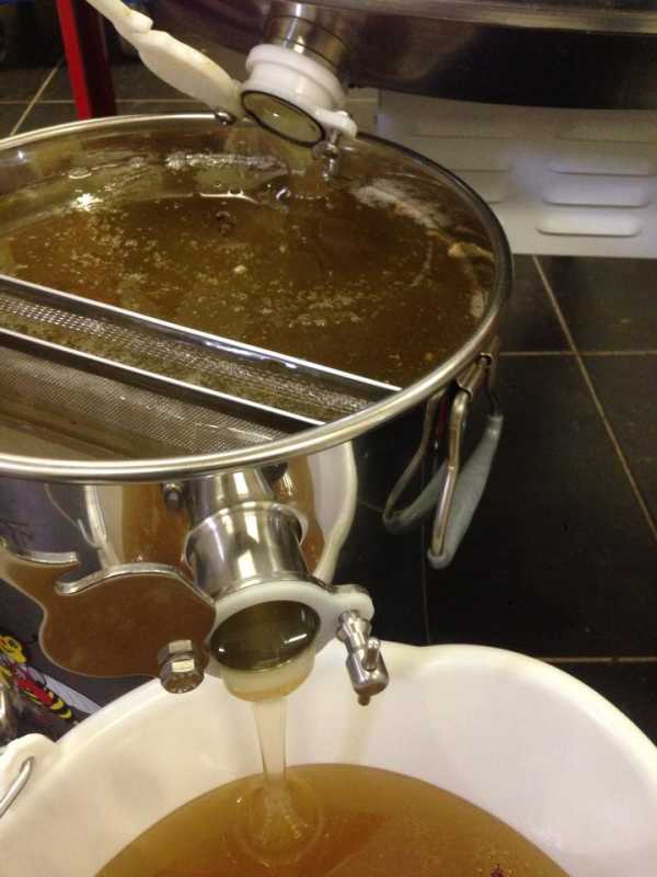 Pour le moment voici comment je procède: sortie d’extracteur > tami “passoir” pour dégrossir, le miel tombe dans un seau de 20kg > une fois plein je le vide dans un plus grand tamis en cône plus fin (300 microns, à 200 microns ça bouche trop vite) au dessus d’un seau de 40kg, pour finir je retire l’écume des seaux après 3 jours.L’idéale serait d’avoir un bac décanteur et une petite pompe, mais manque un peu de place et pour remplir des seaux de 40 kg c’est surement moins pratique que pour du fût.