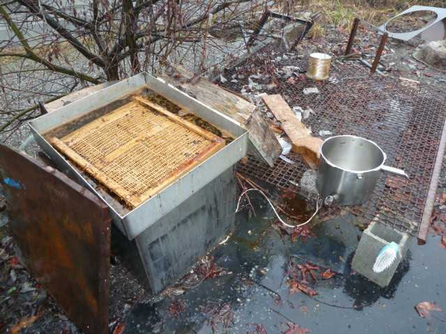 le bac est en place tout le temps,les fonds ça se nettoie facile,les nourrisseurs il vaut mieux les gratter avant car la cire à froid n’est pas attaqué par la soude.