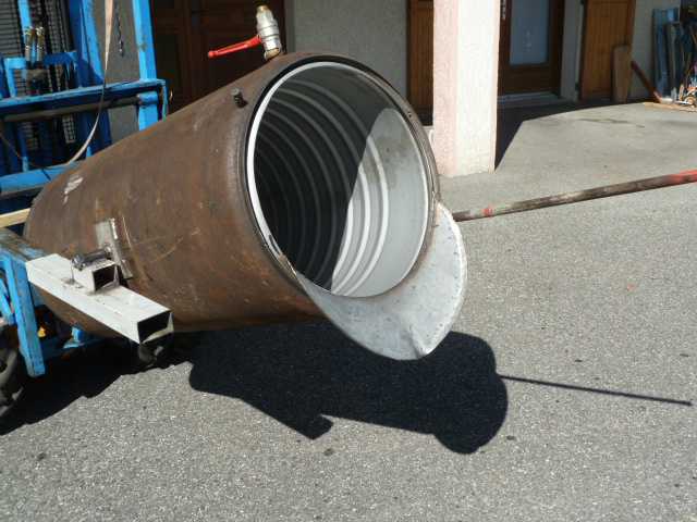 pour fondre les opercules cette année j’ai fait un fût basculant intérieur inox avec chauffage aux bois,je mets 10 litres d’eaux les opercules quand ça fond je recharge en opercules quand c’est plein j’enlève du feux avec l’élévateur et j’attends que ça refroidisse à 70º et je vide doucement dans les moules (tube inox ou bac gastro)