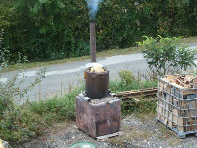 la meme chaudiere pour 34 cadres dadant je fait depart a froid a 4h du mat ! a 8h j ai fait les 4 chaudieres avec panier revidé.