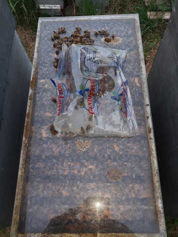 1/2 candi sur la tronche si tu veux pas utiser de sirop et un pot plastique de1kg de miel comme mesure pour les abeilles .