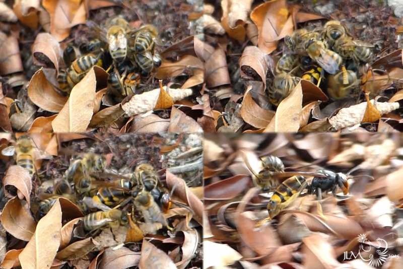 L’important est de savoir qu’elles se défendent contre cet envahisseur indésirable. :twistedJ’ai l’impression que c’est un européen ton frelon :)ry: