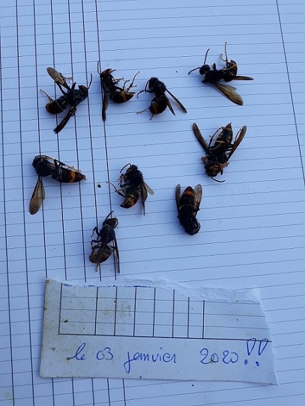 Mais nous ne sommes que le 3 janvier, alors, ces frelons, c’est quoi ? Un nid encore en activité ? des fondatrices ? L’année dernière le GDSA07 avait trouvé un nid en activité en février, alors ……