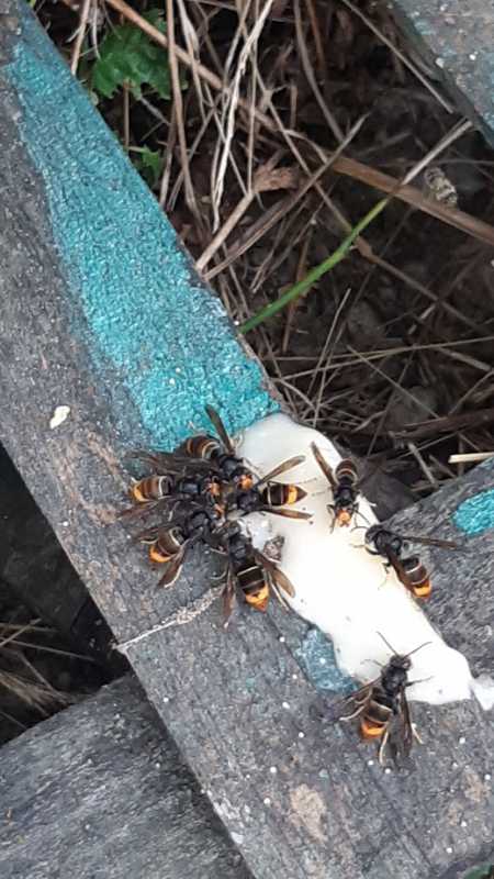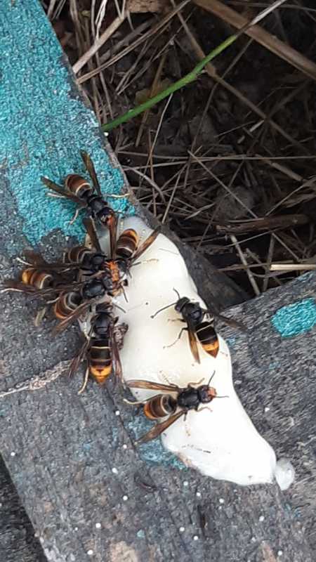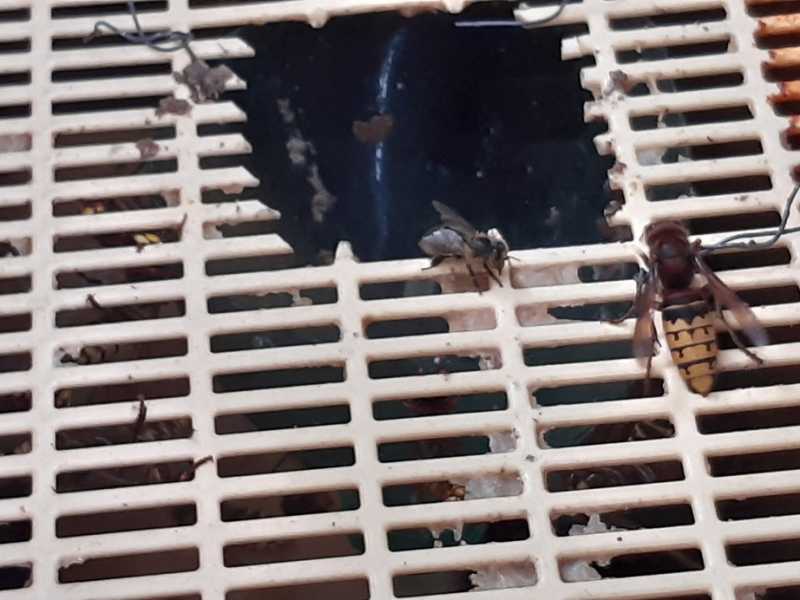 Bonjour, trois frelons repérés autour de mes ruches et un nouveau nid détruit (dans un mur en pierre avec l’enfumoir fumée chaude une reine morte ). Je constate que le frelon asiatique s’installe de plus en plus dans les toitures et les murs en pierres peut être que la canicule de l’année dernière l’oblige a ce rapprocher des habitations.