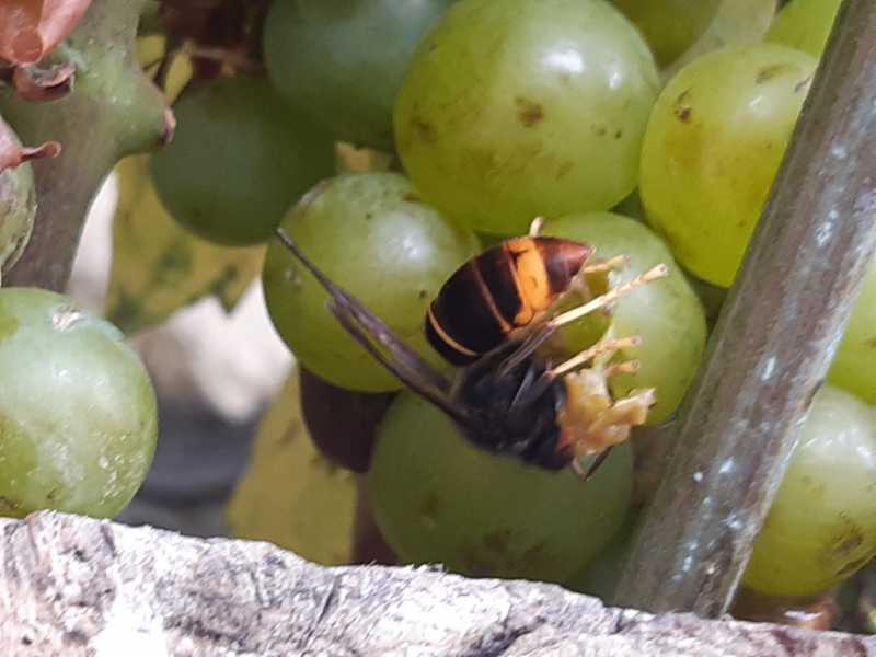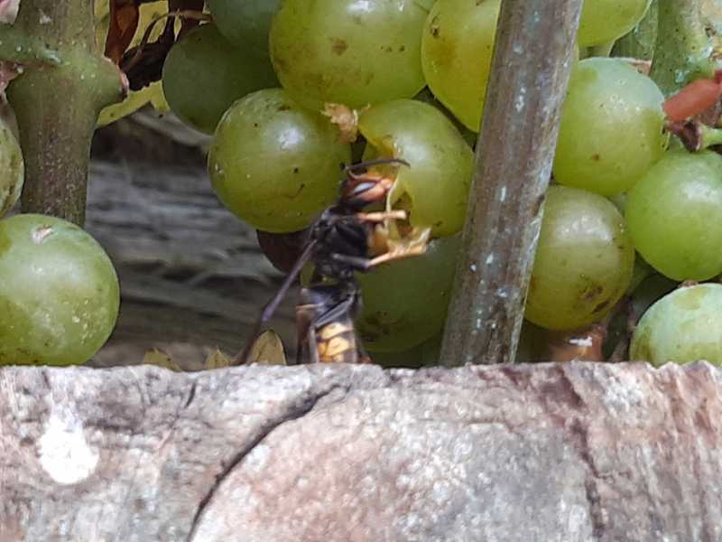Bonjour, chez moi, ils sont partout : devant les ruches, sur les pommes, poires, raisin et même ils viennent jusque dans le panier dans lequel j’ai fait ma cueillette. Et comme en 2020, de vrais gourmets : ils choisisent les meilleurs fruits : le Pinot noir ne les intéresse pas du tout ! En fait, ils ont les mêmes préférences que moi !