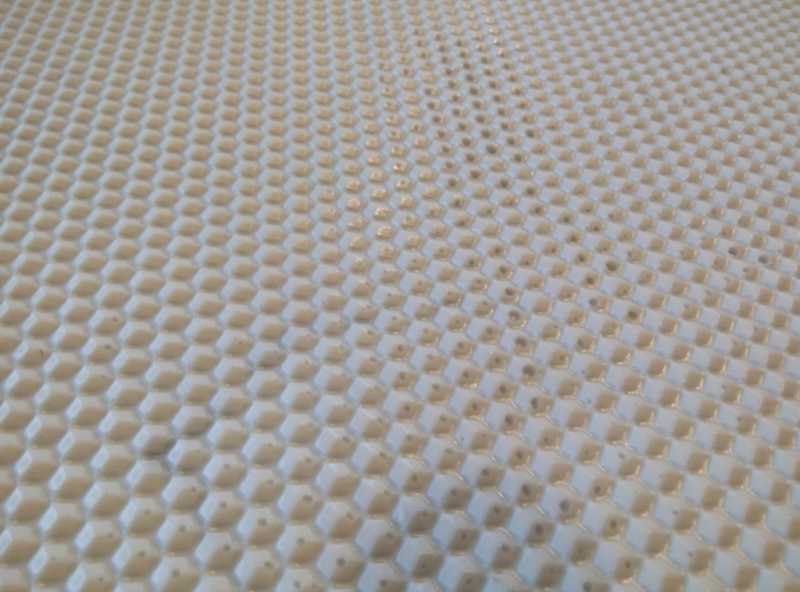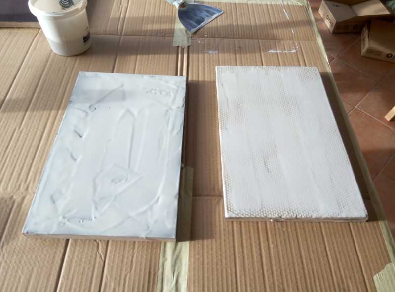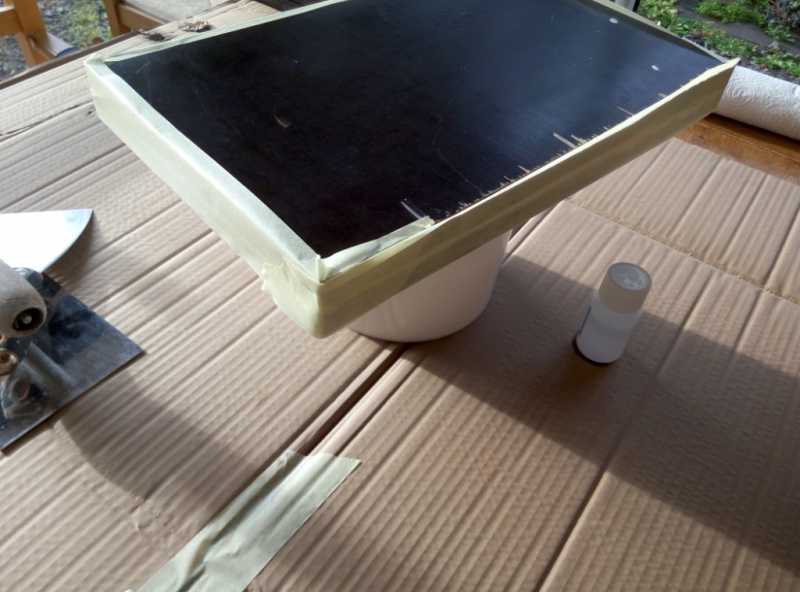 j’ai réutisilé les planches du premier essai que j’avais nettoyé au white spirit(préconisé pour nettoyé le RTV 755), le nouveau silicone n’a pas accroché partout soit à cause de la planche pas assez rugeuse soit à cause du white spirit.2ème problème: il y a eu des bulles d’air dans quelques cellules, il faudra essayer de débuller au prochain essai.