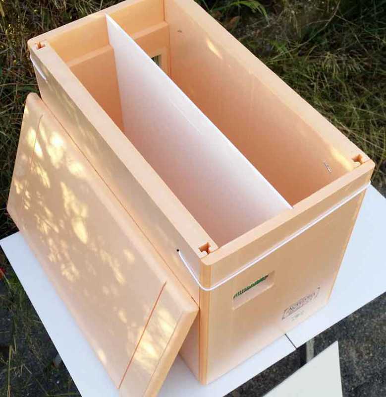 non des ruchettes classiques , cadres corps dadant mais separées en 2 par une planche de pehd alveolaire.
