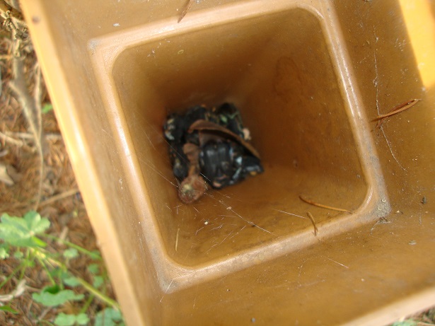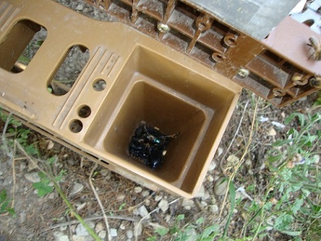 Si vous posez vos ruches sur les palettes Nicot, les “puits”, contre-forme des pieds sont des pièges super efficace, les cétoines ne peuvent pas remonter, et meurent dans d’atroces souffrances! :twisted
