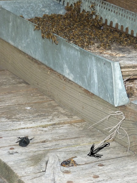 j’arrive de faire la pétanque et vais jeter un œil en passant voir mes abeilles qui sont actuellement visitées par des frelons asiatique