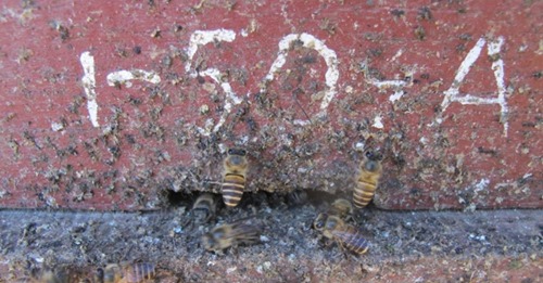 les zaza tapissent de crottes animale l entreé des ruches !!!