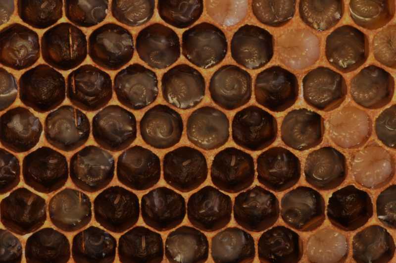 Pour info, ce sont les jeunes larves qui sont les plus difficiles à voir, car elles sont translucides et posées sur une couche de gelée royale, alors que l’œuf est opaque et se détache bien sur la cire.