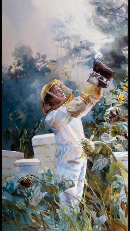 Toujours la même chose, je commence avec une belle fumée mais dès que je commence à ouvrir les ruches il s’essouffle puis s’éteind rapidement.