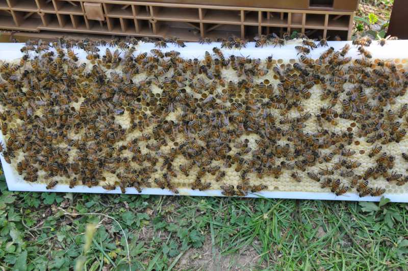 Il faut absolument éviter de poser les cadres de ruches au sol. Les bactéries du sol peuvent très bien se développer dans la colonie et contaminer le miel sans que les abeilles aient un moyen de stérilisation.
