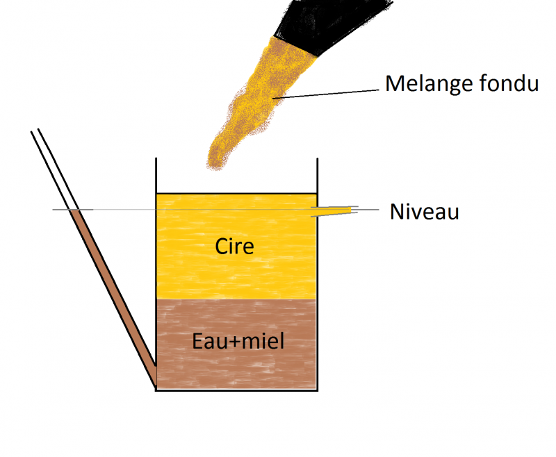 Attendez que lavie vous explique, c’est son truc, ce que je peux vous dire, c’est comme un séparateur en sortie de chaudière, une sortie pour la cire quasi pure, et une autre sortie pour la merde, enfin, le caca, j’veux dire!