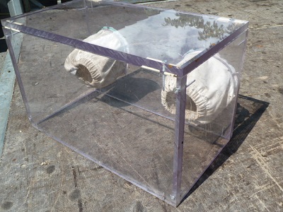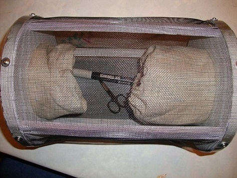 Zaya, tu mets ton système dans le corps d’une bouteille d’eau plastique et tu as une cage à reine géante portative!