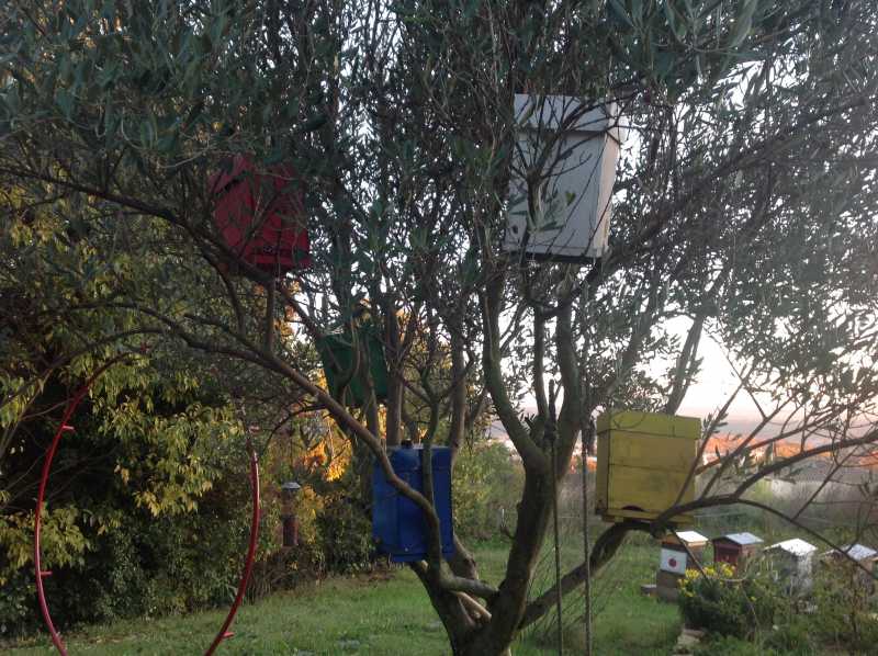 Les trois toits de ruches sont indépendants, ce qui évite de déranger les deux autres (compartiment + ruches)