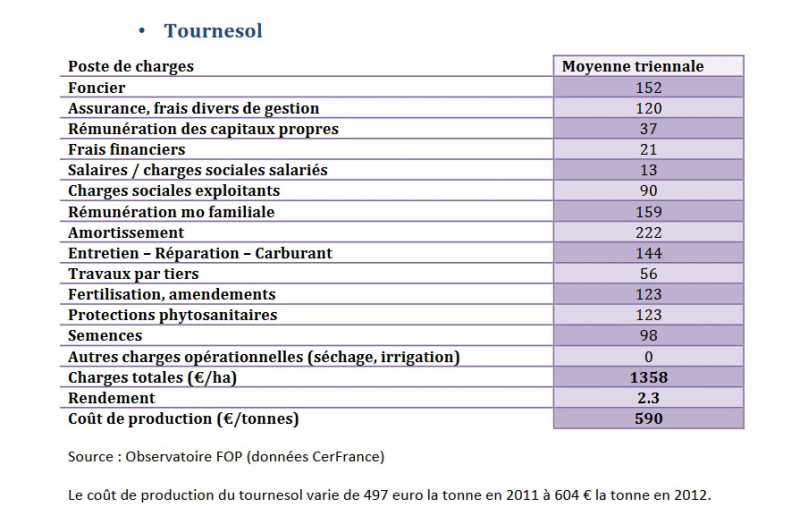 Les plus avisés d’entre vous remarqueront sans doute que le coût de production est supérieur au prix de vente (le tournesol se négocie entre 300-400 euros la tonne)…. bienvenue dans le monde de l’agriculture !