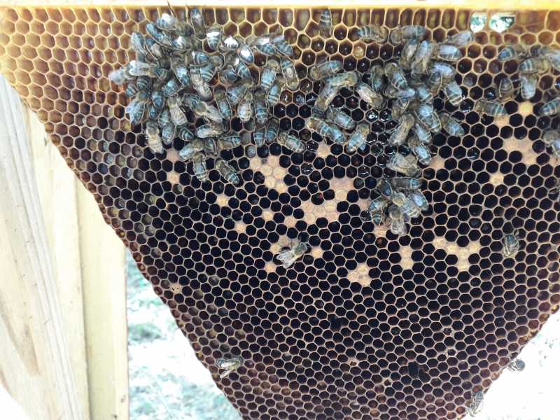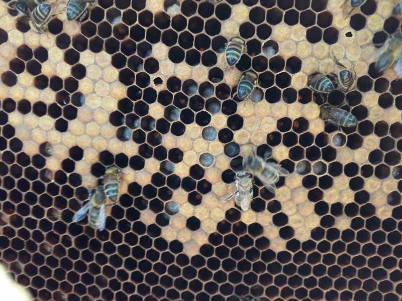 Le couvain est également en mosaîc et j’ai trouvé quelques larves pétrifiées sur le lange.