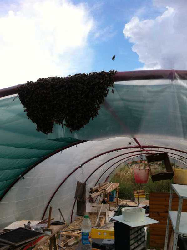 Ce n’est garantie évident, mais certains essaims viennent se poser près des ruchers, comme celui que l’on m’a offert enruché en 2013.