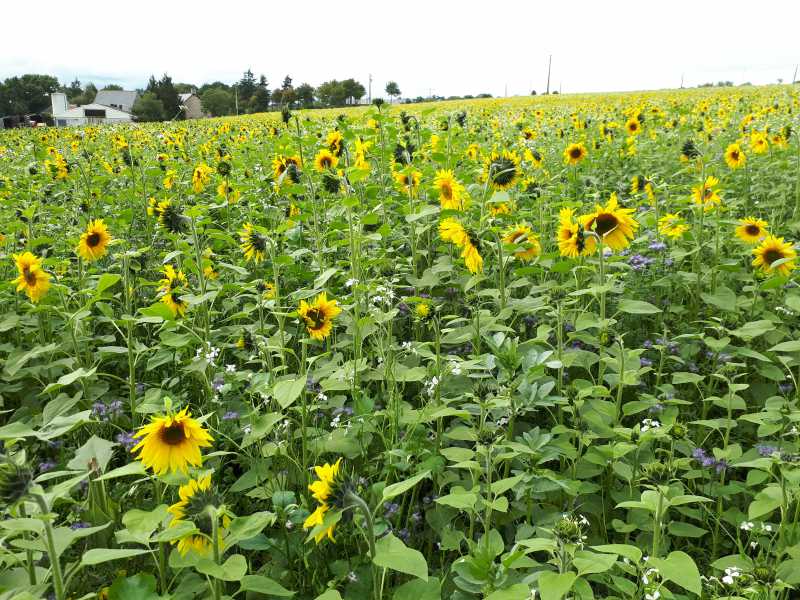 on peut avoir deux cultures de phacelie par an sur le même terrain !!!Ici la floraison du tournesol bat son plein !!