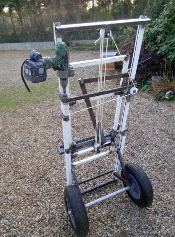 Voici quelques photos, le lève ruche n’est pas terminé , il manque une poignée et à refaire le système d’enroulement de la corde.
