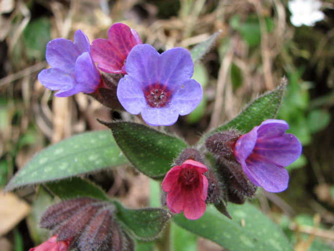 Tu parle bien de ces fleurs bleu et viollettes couvertes de poils avec des feuilles tachetées?Bonne description Tom