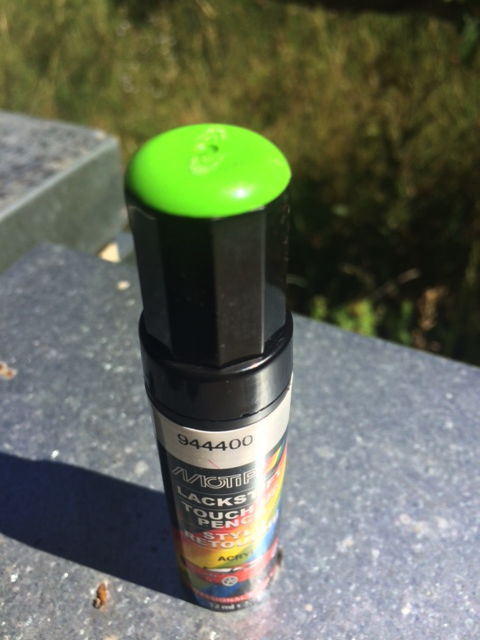 )Je fais avec de la peinture de retouche auto, depuis que j’ai vu Mr Verjus faire !
