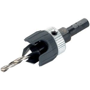 Mais c’est une fraise de mécanicien, donc pas vraiment adaptée au travail du bois, car le bois n’étant pas homogène, la fraise ne reste par toujours concentrique avec l’axe du trou, mais enfin c’est mieux que rien, et il vaut mieux un fraisage à peu près que pas de fraisage.